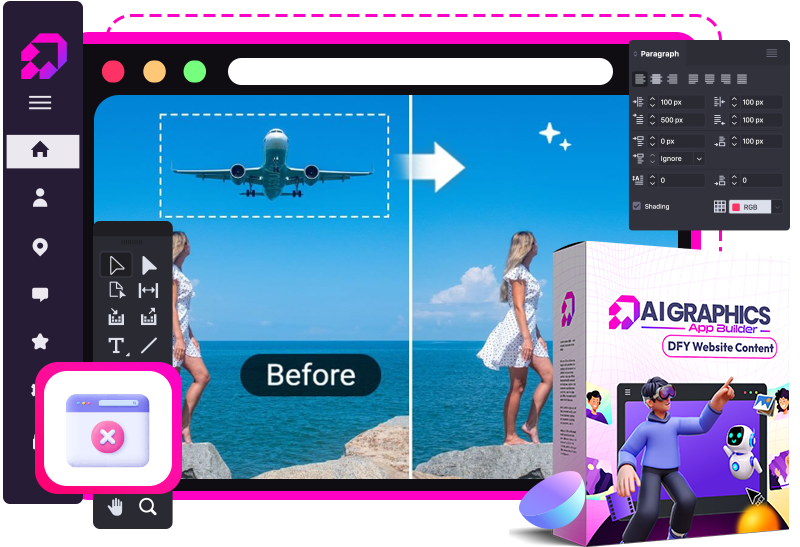 Earnings & Income Disclaimer: Earnings and income representations made by AI Graphics App Builder and its advertisers/sponsors (collectively, “AI Graphics App Builder”) are aspirational statements only of your earning potential. These results are not typical, and results will vary. The examples shared are our results or user submissions based on experience and years of testing. We can in NO way guarantee you will achieve similar results.Your results depend on many factors including (but not limited to) your skills, experience, effort, market conditions, audience, offer, compliance, and external variables beyond our control. As with any business endeavor, you assume all risk related to your investment of time, money, and resources.